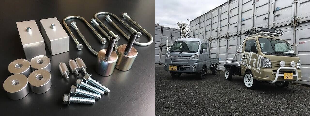 国内生産で品質が海外物とは違います。部品点数はあまりありませんがリフトアップを気軽にできるキットです。2インチアップ(5センチ上がります。)タイヤの外形の大きいものでさらに3センチは上がります。